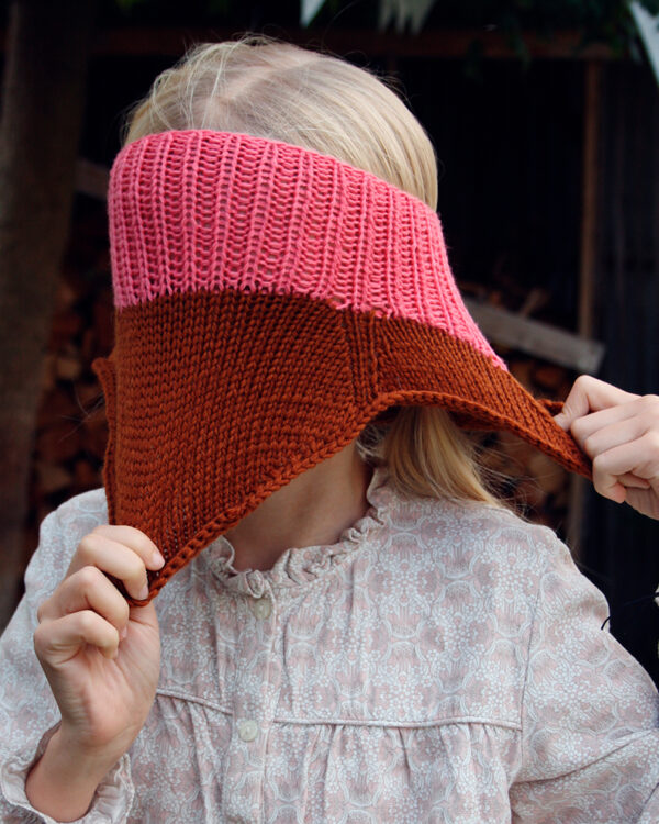 Tofarvet Halsedisse af dygtige Dorte Bak, er en dejlig lun halsedisse som sidder godt på barnet og sørger for at halsen bliver holdt lun.