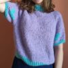 Calin T-shirt fra Knittersisters er en oversized, croppet T-shirt med en dobbelt halskant og dekorative hjerter på ærmerne. Navnet “Calin” betyder kram på fransk – og det afspejles tydeligt i det bløde og hyggelige udtryk. Modellen strikkes oppefra og ned med rundpinde og uden sammensyninger, hvilket giver et professionelt finish og en behagelig pasform.
