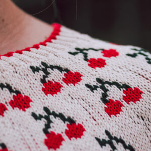 Designet benytter op til tre farver og hele syv forskellige strukturmønstre, herunder perlestrik, diamanter og vaffelstrik, som tilsammen giver sweateren et unikt og legende udtryk. Der strikkes i Double Sunday merino fra Sandnes Garn (100 % merinould, 108 m pr. 50 g).