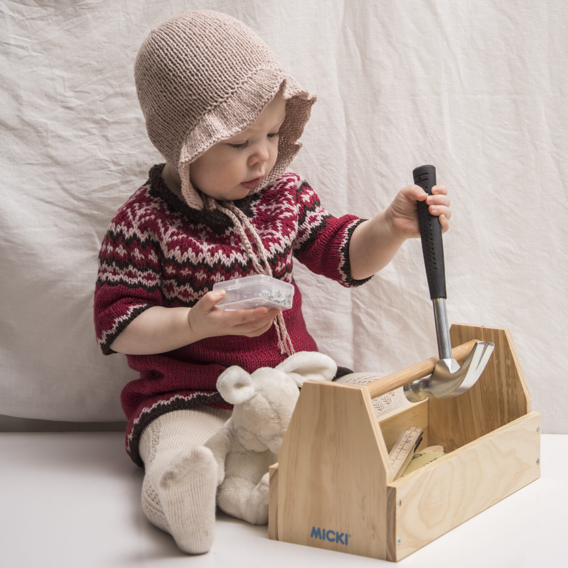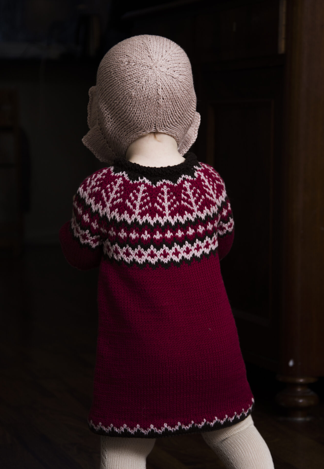 Smuk og alsidig børnetunika med nordisk mønster. Strikkes i Dale Lerke (53 % merino, 47 % bomuld) med pinde 3 og 3,5 mm. Kommer i str. 3 mdr. til 12 år.