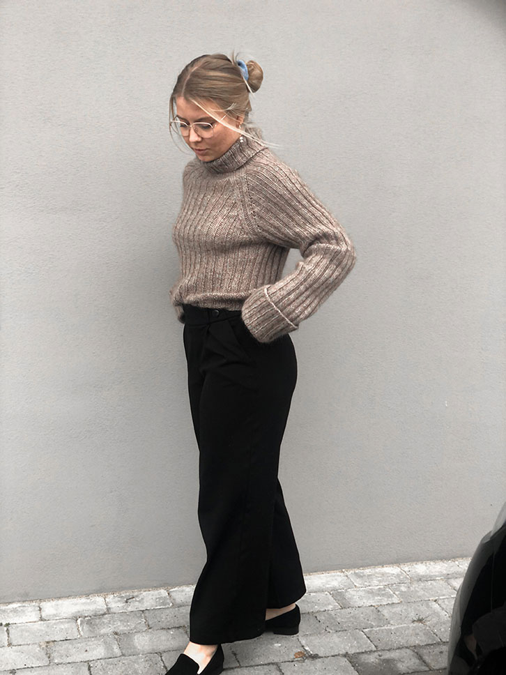 Estrid Sweater bør have et bevægelsesrum på ca. 10-15 cm i forhold til