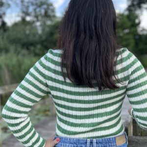 Du strikker Forever Rib Tee på pind 3-4mm. Opskriften finder du her på YARNBOOK.