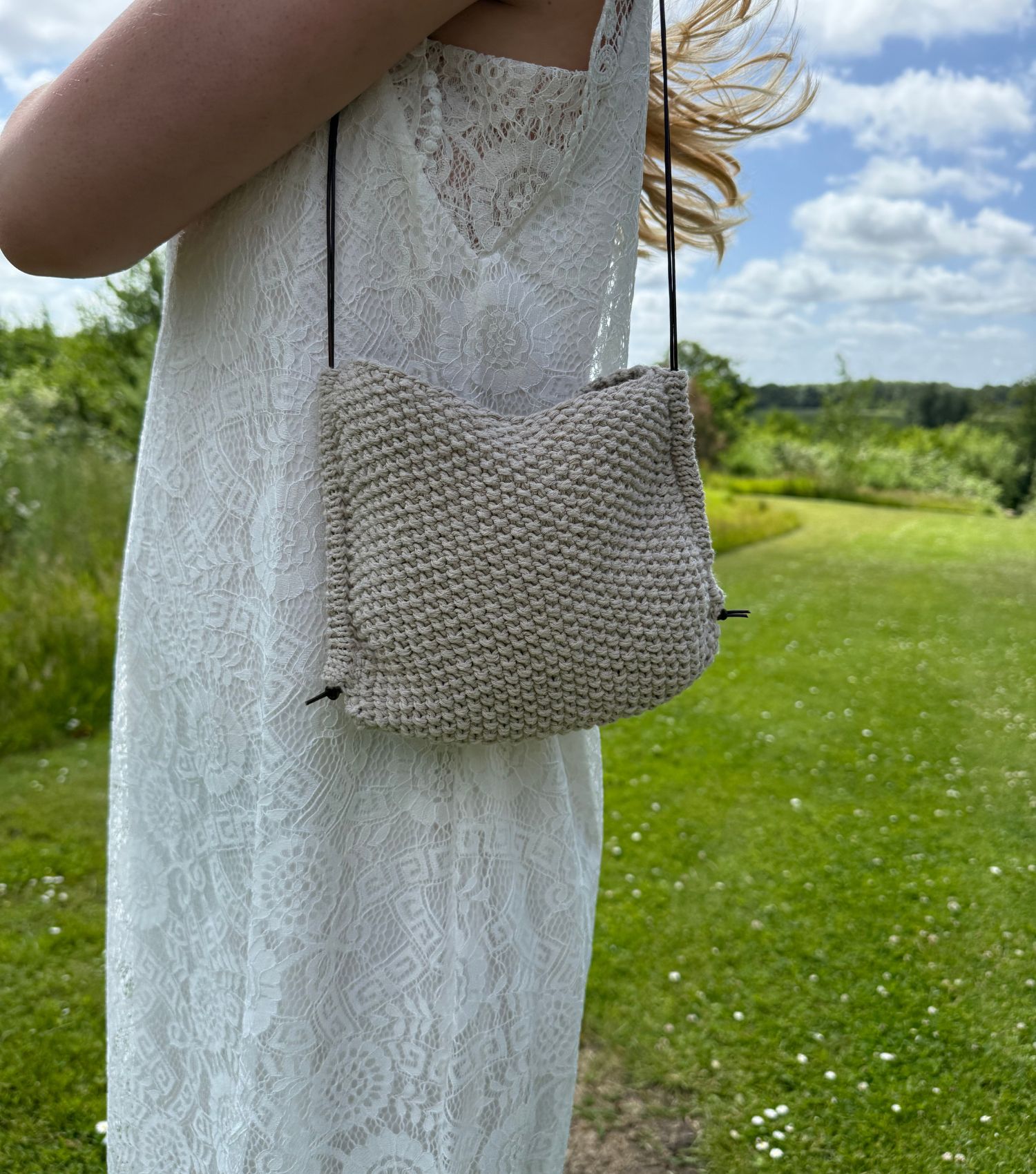 Karen Bag fra AxelKnit er en moderne og enkel strikketaske, strikket fra toppen og ned i to tråde Cotton Light fra Drops. Tasken strikkes i perlestrik på pind 5 mm, hvilket giver en flot og robust struktur. Den kommer i to størrelser, 19 × 19 cm og 21 × 21 cm, og afsluttes med en løbegang i hver side, hvor lædersnørene trækkes igennem for et minimalistisk og praktisk udtryk. En perfekt taske til hverdag, byture eller som let sommertaske.