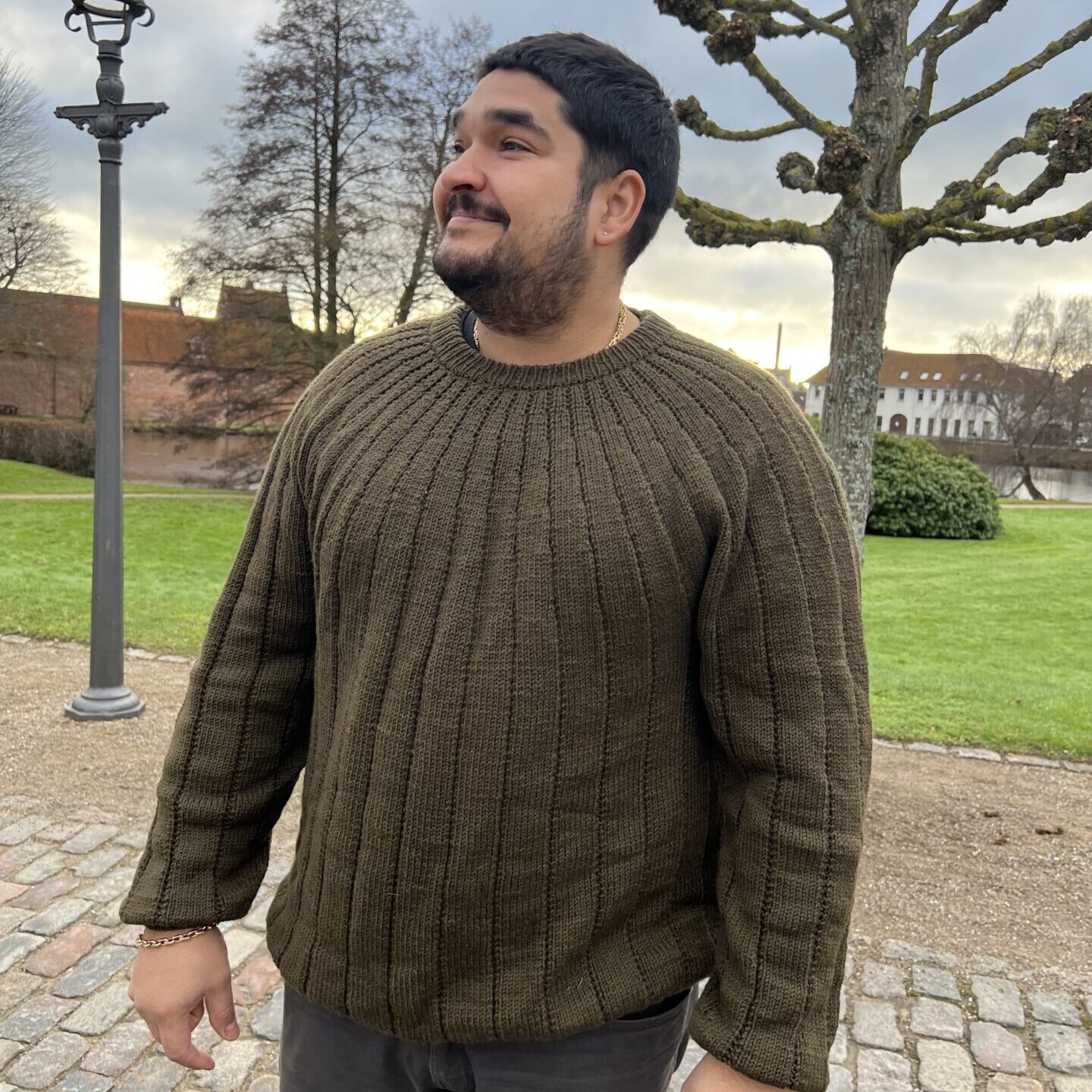 Knuds Sweater fra Kracun Knitwear er en strikket herre sweater som strikkes oppefra og ned. Sweateren har et stilrent udtryk med mønster og ribkanter.