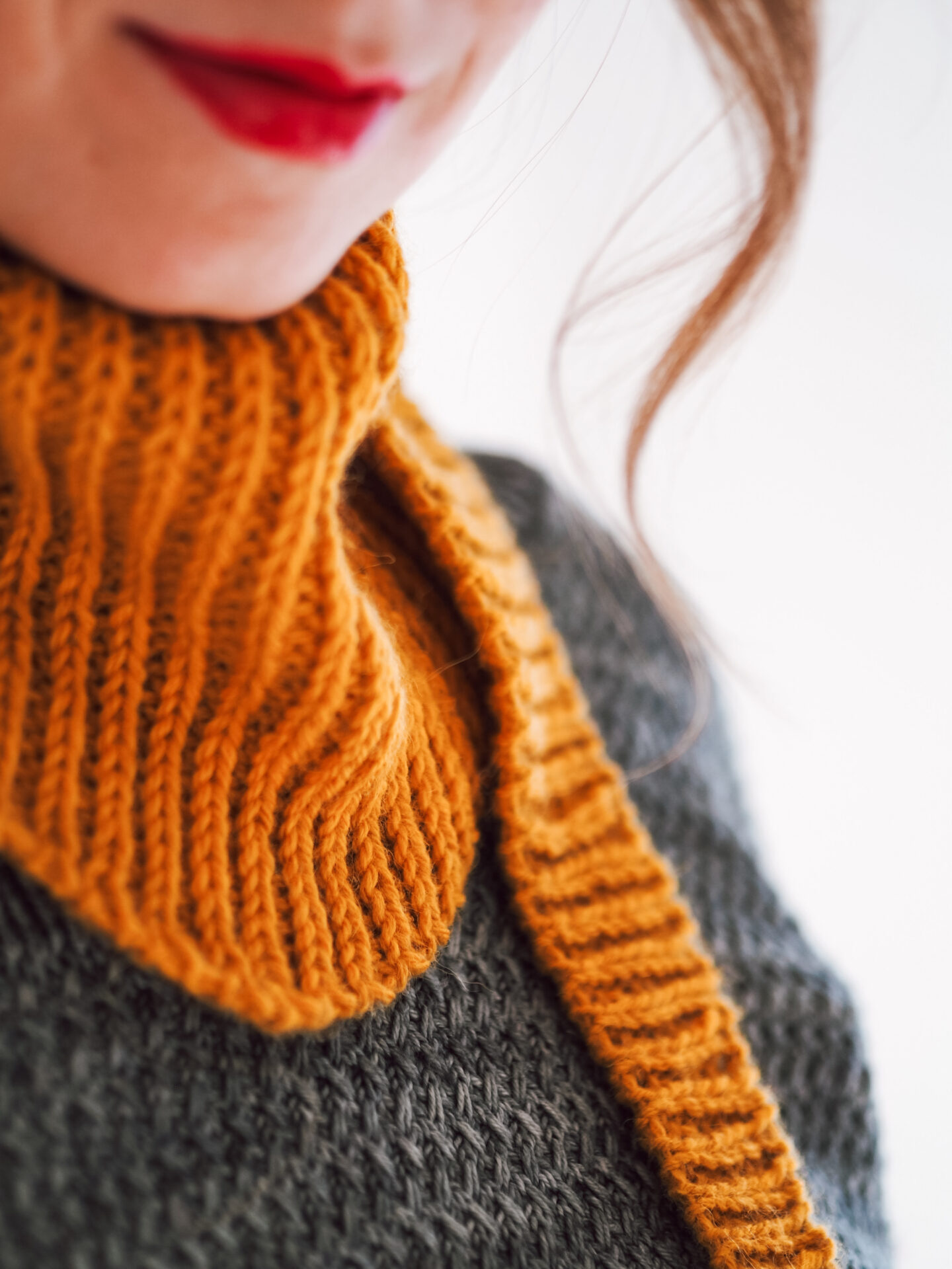 Luise Shawlette is designed to be easy to wear and versatile, making it ideal for everyday use. Its shallow depth allows it to rest naturally on the body, providing warmth without heaviness. The half-brioche structure gives the shawlette elasticity and softness, making it a comforting piece that feels as good as it looks.