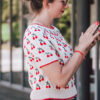 Marilyn Tee is a fun and confident knitted top by designer Miriam Walchshäusl (Mrs Funny Valentine), inspired by Marilyn Monroe’s bold personality and iconic style. The tee is knit seamlessly from the top down with a round yoke and features an all-over cherry Fair Isle pattern that radiates summer charm.
