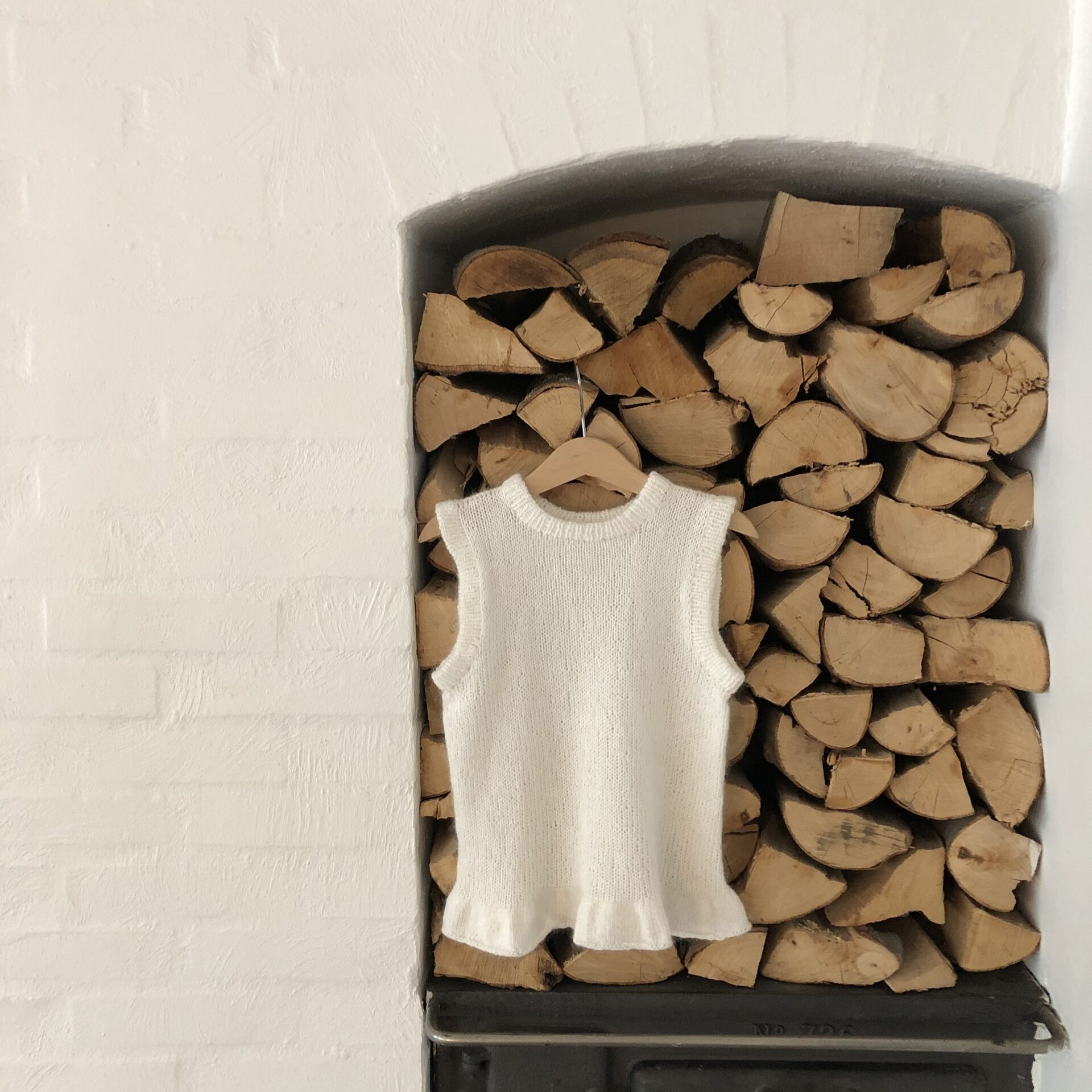 Martha Slipover er strikket med en flæse i taljen og en dobbelt ribstrikket kant ved halskant og ærmegab, som giver et spændende udtryk. Slipoveren kan bruges til mange lejligheder.