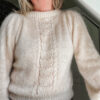 Muslinge Mohair Bluse er let som en sky og elegant i sit udtryk med pufærmer og et dekorativt muslinge- og snoningsmønster på forstykket. Den strikkes oppefra og ned i to tråde silk mohair holdt sammen, hvilket giver blusen en blød og luksuriøs kvalitet. Et oplagt valg til både forår, sensommer og som et let lag om vinteren.