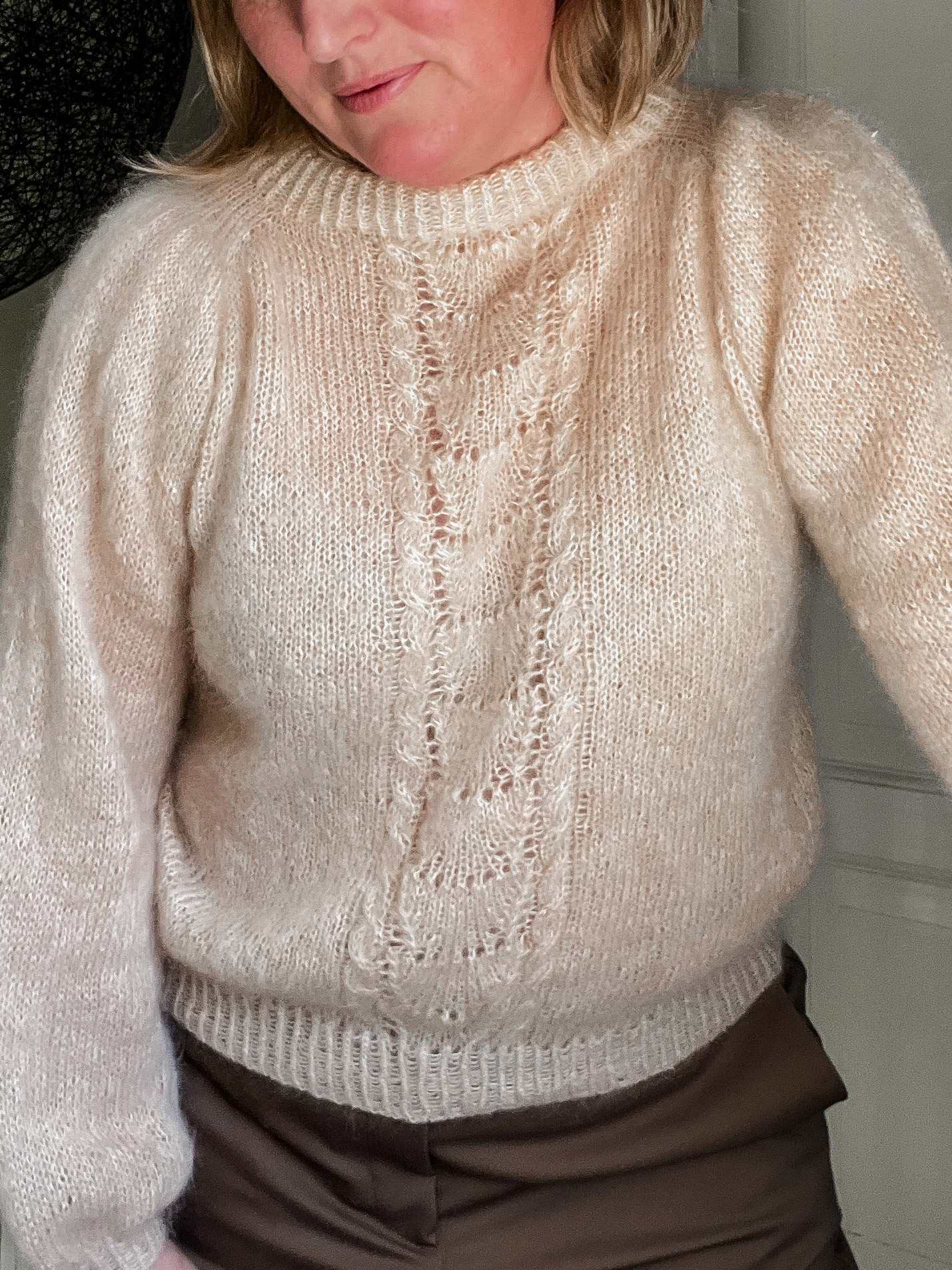 Muslinge Mohair Bluse er et gennemarbejdet strikkeprojekt for den erfarne strikker, og det færdige resultat er en tidløs, luftig bluse med eksklusive detaljer – perfekt til garderoben året rundt.