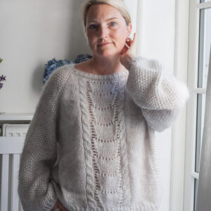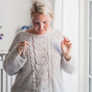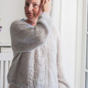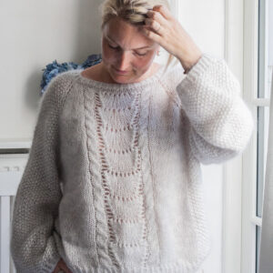 Muslinge Sweater er en enormt yndefuld og detaljeret sweater, designet af den dygtige Dorte Bak. Sweateren strikkes oppefra og ned med raglanudtagninger og forstykket prydes af et feminint muslingemønster kombineret med snoninger, der skaber en elegant og eksklusiv struktur. Ærmer og sider strikkes i perlestrik, hvilket tilføjer en smuk kontrast og tekstur til helhedsudtrykket. Modellen har en løs og afslappet pasform med ca. 10 cm bevægelsesrum og fås i størrelserne XS til XL.