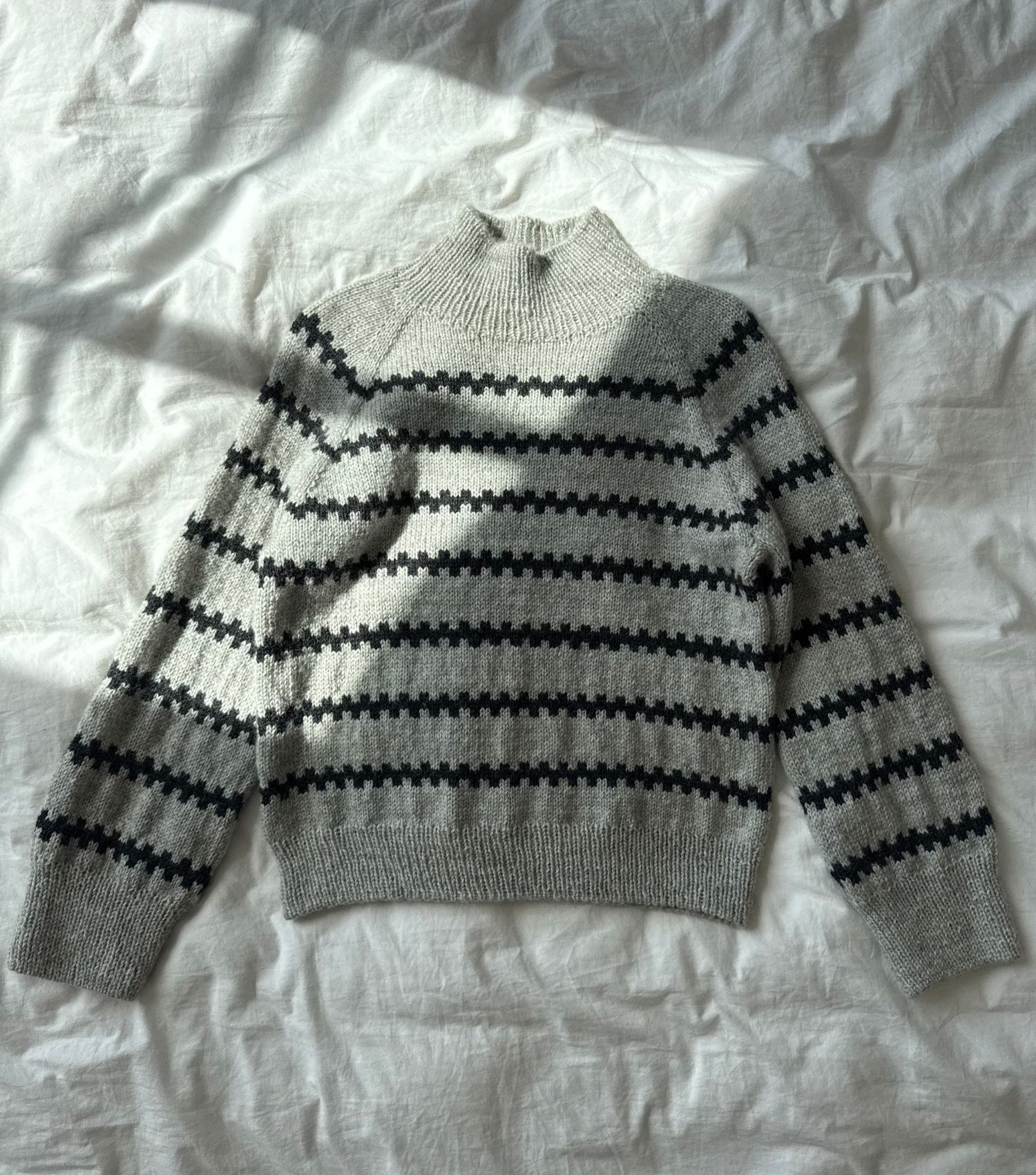 Olivia Sweater er en klassisk striktrøje med moderne stribemønster, der strikkes oppefra og ned med raglanudtagninger. Modellen har en bred ribhals, og bærestykket formes med vendepinde for optimal pasform. Sweateren strikkes i Karisma eller Merino Extra Fine fra Drops, begge med en løbelængde på ca. 100-105 m pr. 50 g. Den anbefalede strikkefasthed er 21 m x 28 p på pind 4 mm, og modellen fås i størrelser fra XS til 5XL. Vælg mellem 500–850 g bundfarve og 150–300 g stribefarve afhængigt af størrelse. Krop og ærmer strikkes rundt og afsluttes med ribkanter og italiensk aflukning for et professionelt resultat. Olivia Sweater er et perfekt projekt for den erfarne strikker, der ønsker en alsidig og flatterende sweater.