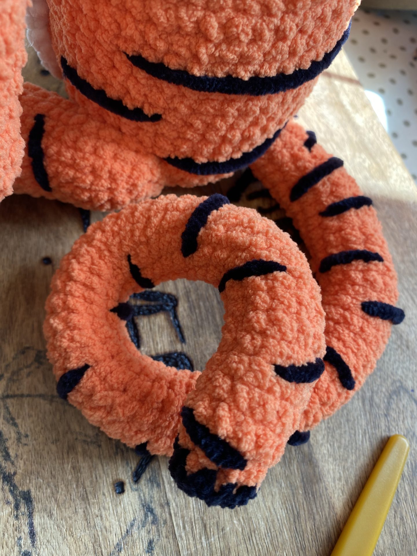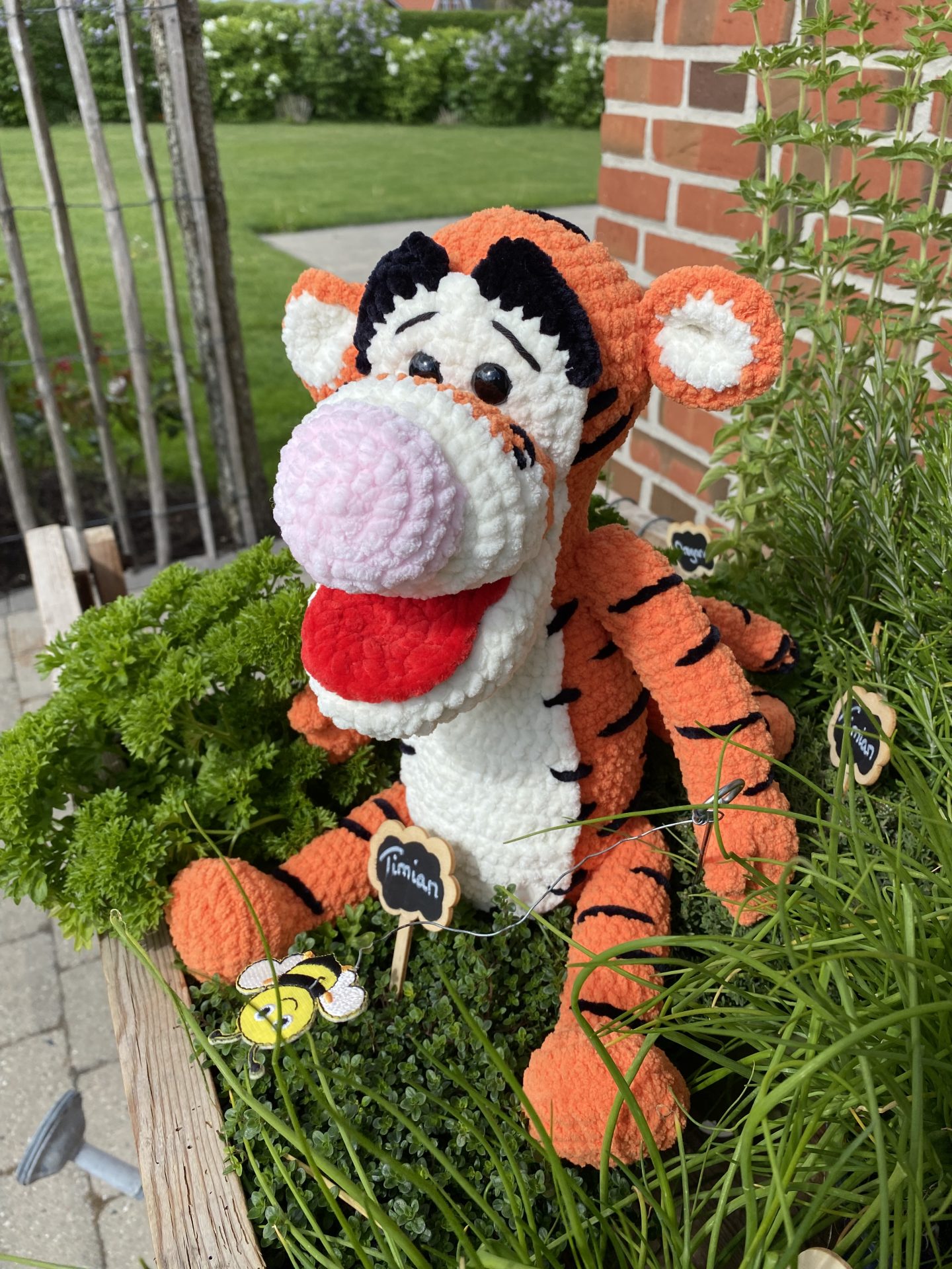 Opskriften angiver hvilke garner der bliver brugt, og det er her intet problem at skifte dem ud og bruge egne alternativer, såfremt nålestørrelse og løbelængden er den samme. Størstedelen af Tigerdyret et hæklet i blød polyester, hvor der er blevet brugt lidt forskellige garner til diverse detaljer f.eks. til øjenbrynene.