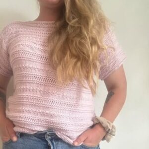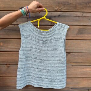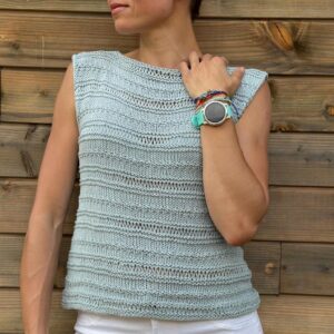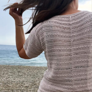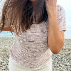 Toppen strikkes nedefra og op og kan laves både med og uden ærmer. Den er sømløs og konstrueret, så du undgår montering. Designet er boxy i pasformen og har en bådudskæring samt elegante i-cord-kanter. Det gør den perfekt som afslappet strik i forårs- og sommergarderoben – og ikke mindst som ferieprojekt.