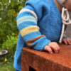 Wasaga Cardigan (baby) af Vibely Strik er en sød og tidløs babycardigan strikket oppefra og ned med raglanudtagninger, striber på ærmerne og i-cord-detaljer. Modellen har ribkanter, italiensk aflukning og en fin knappestolpe med 5–6 knaphuller.