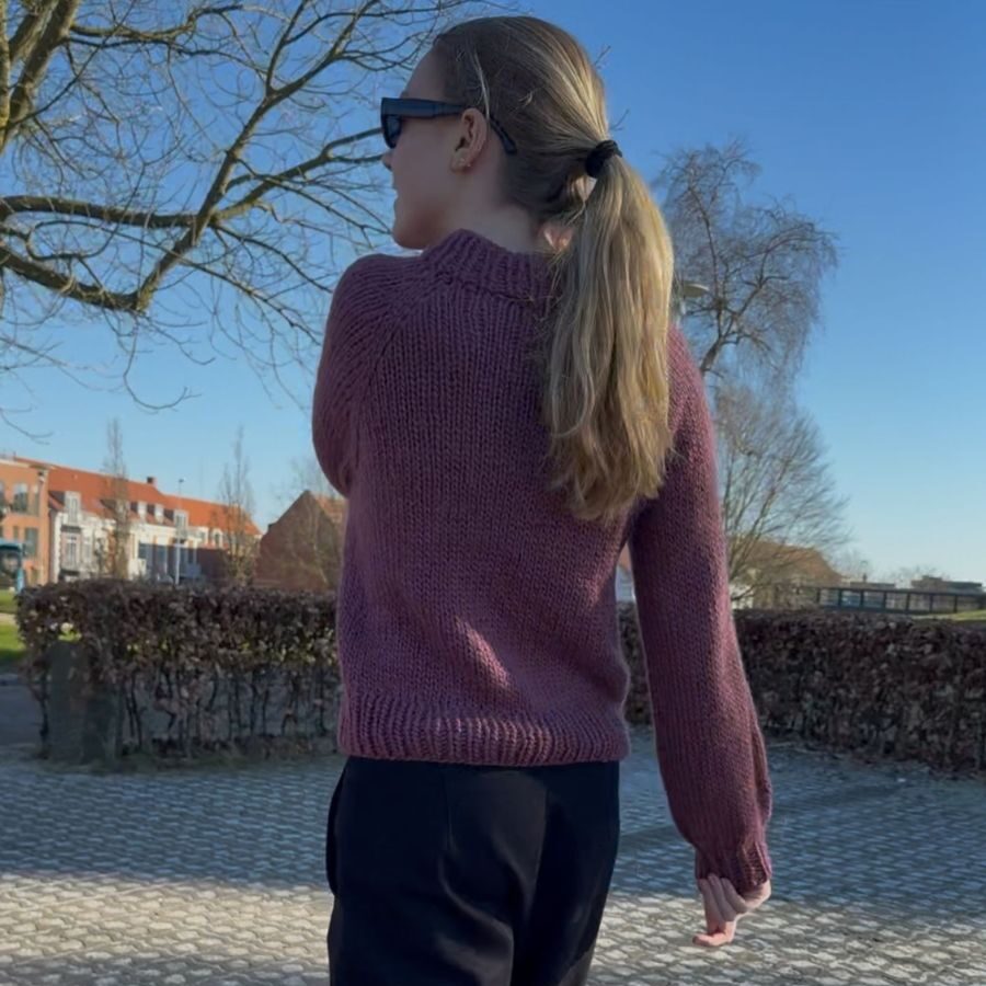 Wilma Sweater er en lun, feminin og moderne sweater med en smuk pasform og klassiske detaljer. Sweateren strikkes oppefra og ned med raglanudtagninger, hvilket gør det nemt at tilpasse længden på både krop og ærmer undervejs. Den har en tæt siddende ribkant i halsen, som ombukkes og strikkes ned for et flot finish. Modellen har et kort og moderne snit, og ærmerne afsluttes med en tætsiddende rib, der fremhæver sweaterens elegante form.